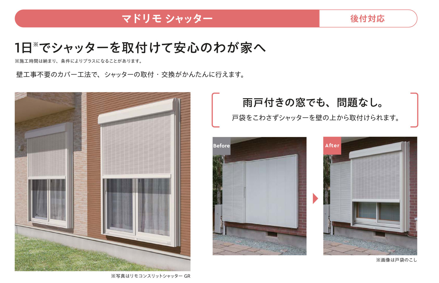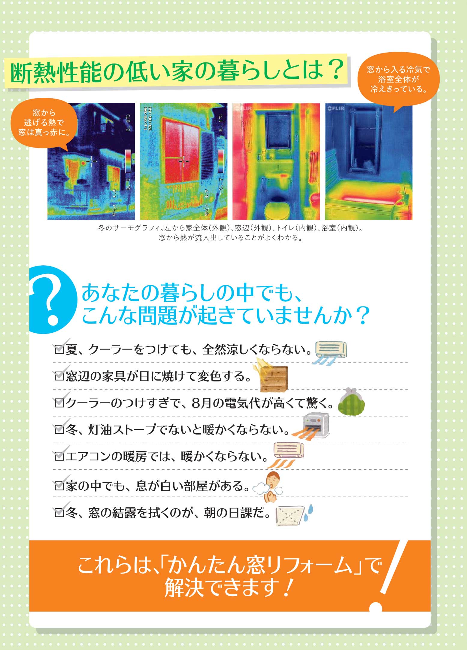既存の窓枠をそのままに、新しい窓をカバー工法で取り付けます。こちらも壁工事不要、1日でリフォーム完了します。気密性を高くし、結露やヒートショックを防ぐ効果も。